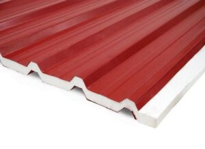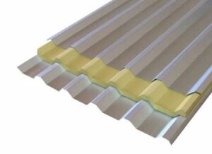 As telhas sanduíche são caracterizadas por duas telhas de aço galvalume e preenchidas por poliuretano, isopor (EPS), lã de vidro ou lão de rocha constituindo um “sanduíche” ou simplesmente uma única telha metálica com revestimento inferior.